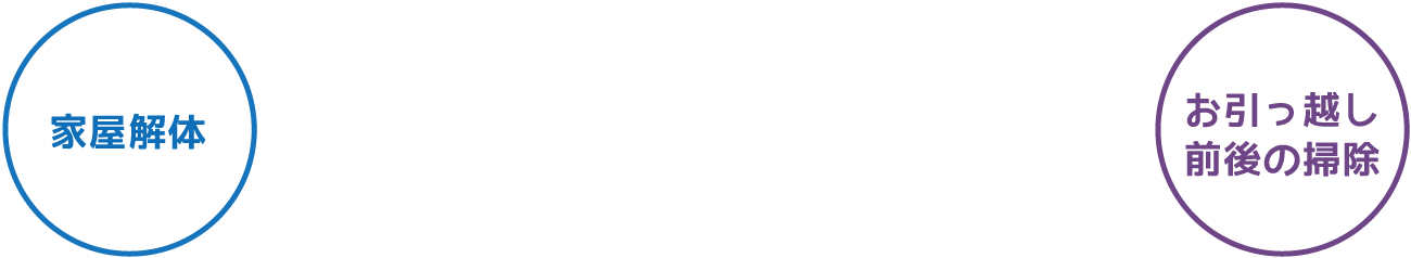家屋解体・遺品整理・粗大ゴミや不良品の処理・倉庫整理・家具の移動・お引っ越し前後の掃除・庭掃除等